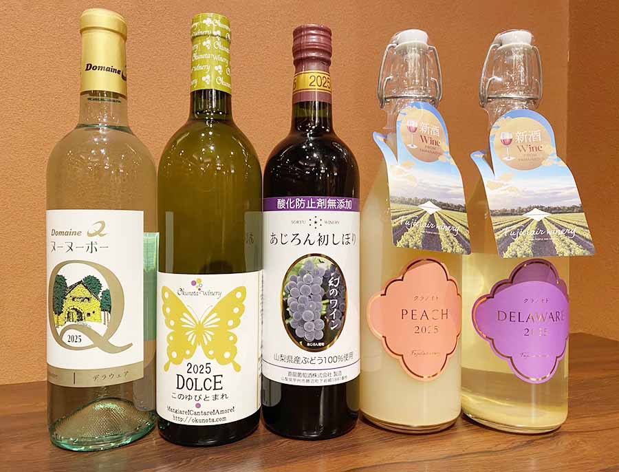 甲州種とマスカット・ベーリーA種で造られた新酒がリリースされる日ですが、この2品種以外の品種で造られたワインには解禁日が定められておらず、9月半ば頃からデラウェアや巨峰、アジロンなどの新酒が出はじめます。フレッシュな果実感と爽やかな酸味が心地よく、お酒が苦手な方にも喜ばれるワインです。ぜひお試しください!