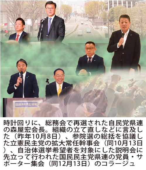 県内選挙区の衆参国会議員数は前回の衆院選と昨夏の参院選でこれまで「1強」だった自民党が退潮。与野党が拮抗(きっこう)する形となり、県内の政治勢力図がさま変わりした。県内の主要党は次期衆院選や来年の統一地方選をにらみ、組織強化を見据えた研修会や、自治体選挙への候補擁立に向けた説明会を開くなど、党勢拡大に注力している。連立政権を離脱した公明党側には自民、立民両県連が選挙協力を見込んで秋波を送る。今後、同党県本部の対応も焦点になりそうだ。